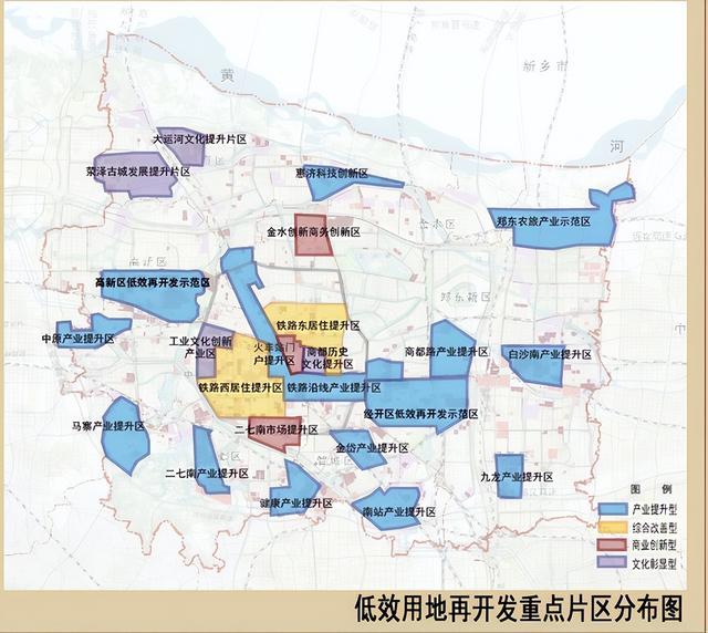 文化彰显型:荥泽古城发展提升片区、大运河文化提升片区、工业文化创新产业区、商都历史文化提升区。